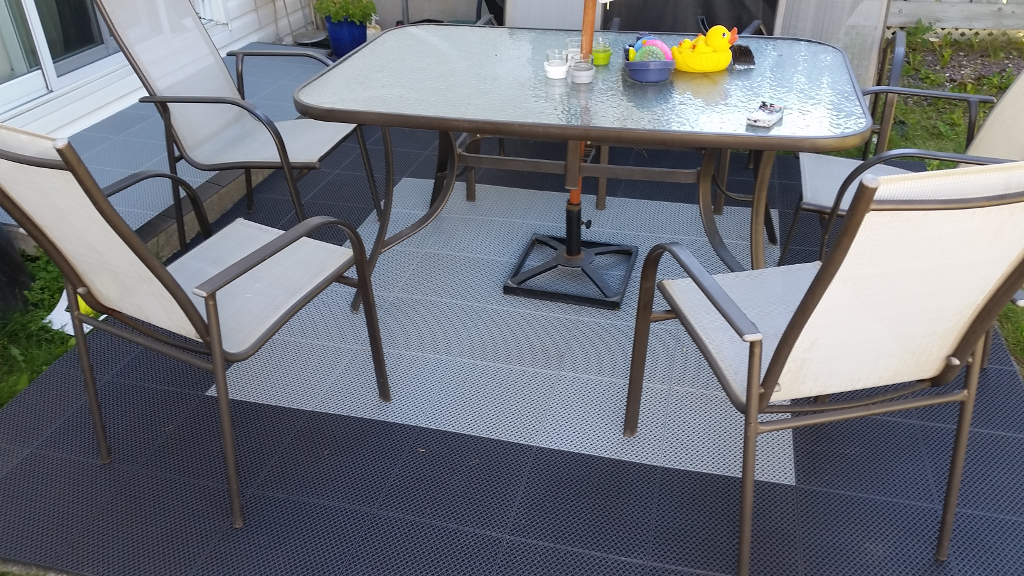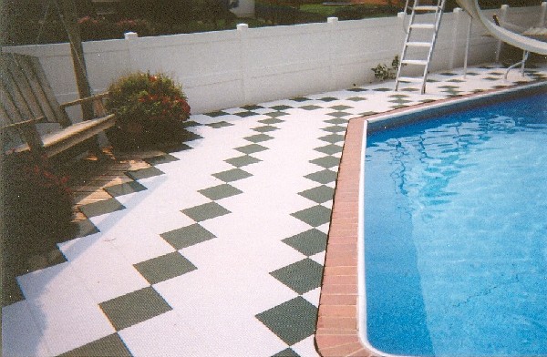 Decks, Docks, Patios, Pools, Hot Tubs Tired of staining your deck? Use Deck Tiles! If you live in a large home or a small condo, Sport Court & Sportgrid deck tiles can make a major improvement on your investment at a fraction of the cost of rebuilding or renovating a deck. In many cases a simple re-surfacing with deck tiles is all that is needed to make it "new" again. The structural stability of most decks is usually sound, so why would you rebuild a deck? Simply re-cover the deck with Sport Court / Sportgrid Deck Tiles. Our interlocking tiles are self-draining, easy to install and can be cut to fit any shape. The self-draining, anti-slip surface is perfect around pools, hot tubs and docks. The deck tiles can also be used in commercial applications. Two inch bevelled edges are also available. Our tiles are also used for commercial applications such as roof top decks and patios in condos and apartments.